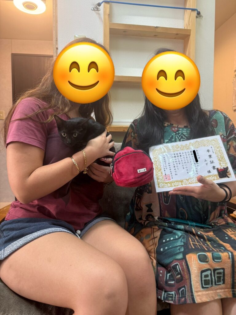譲渡当日には、仲良しのニコくんとにゃんプロで元気いっぱい遊び、