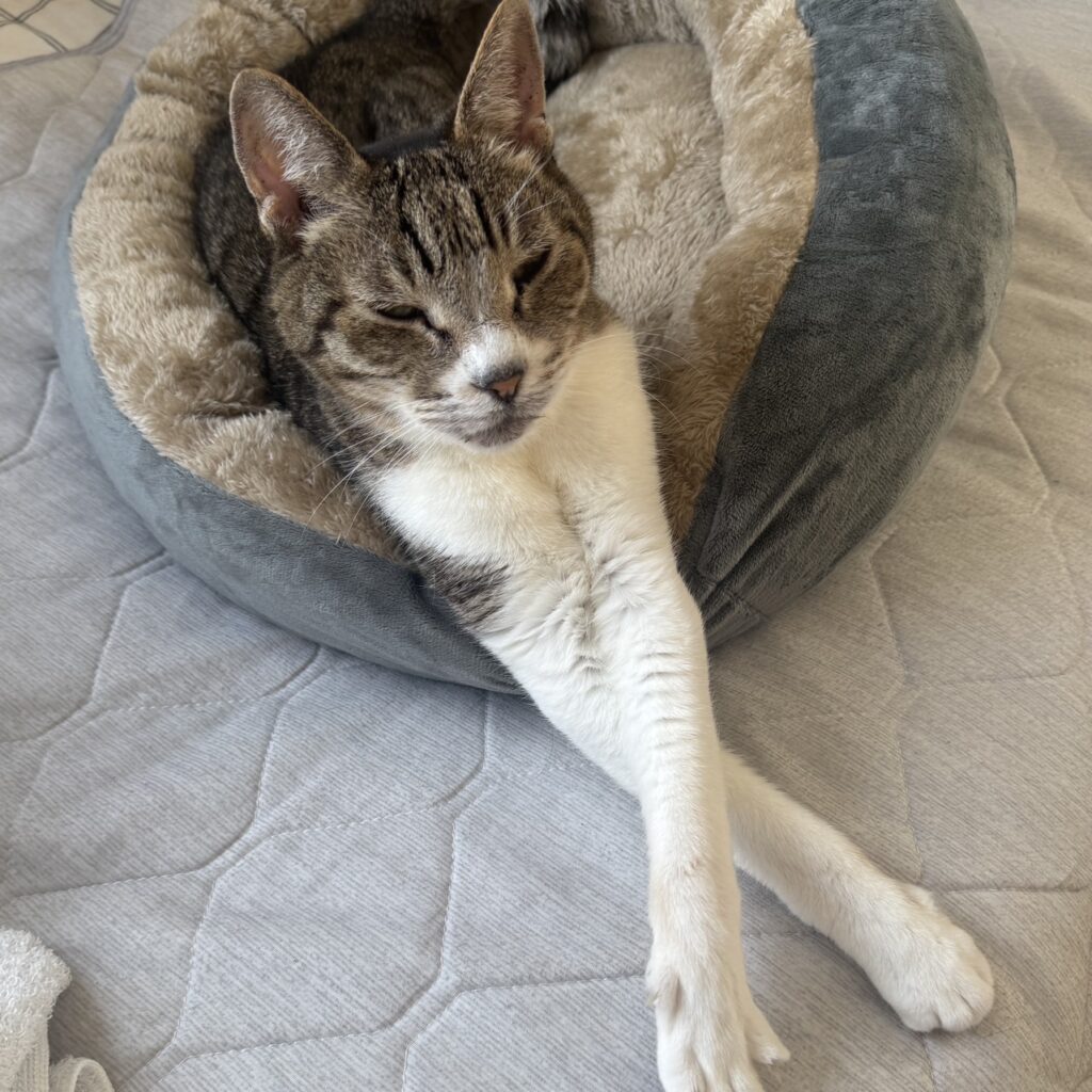 次の日以降も赴くままにお昼寝したり探索したり、構うと喉を鳴らしてご機嫌です🥰」