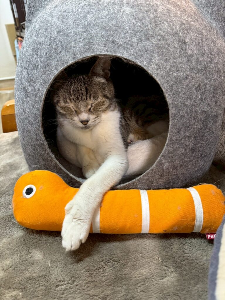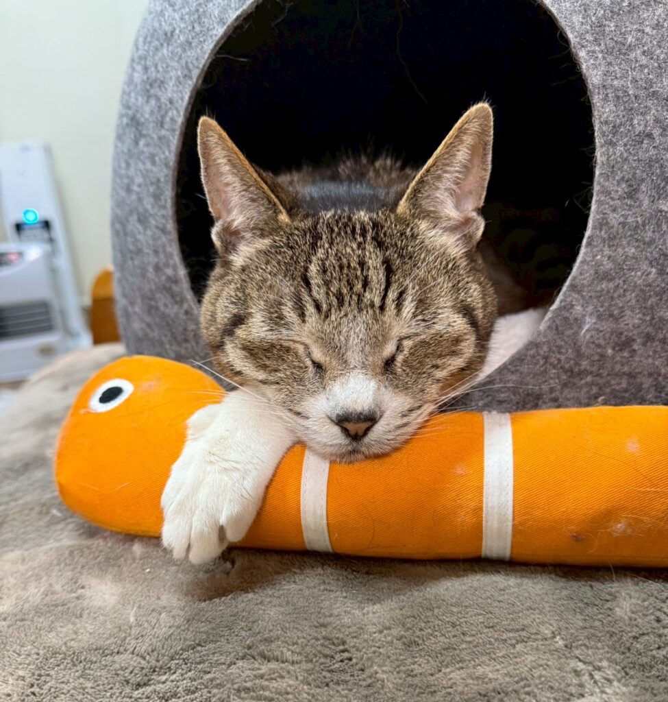 新しい環境にもすぐに慣れ、あたたかい存在感で周囲を和ませてくれる優しいおじいちゃん猫でした。
