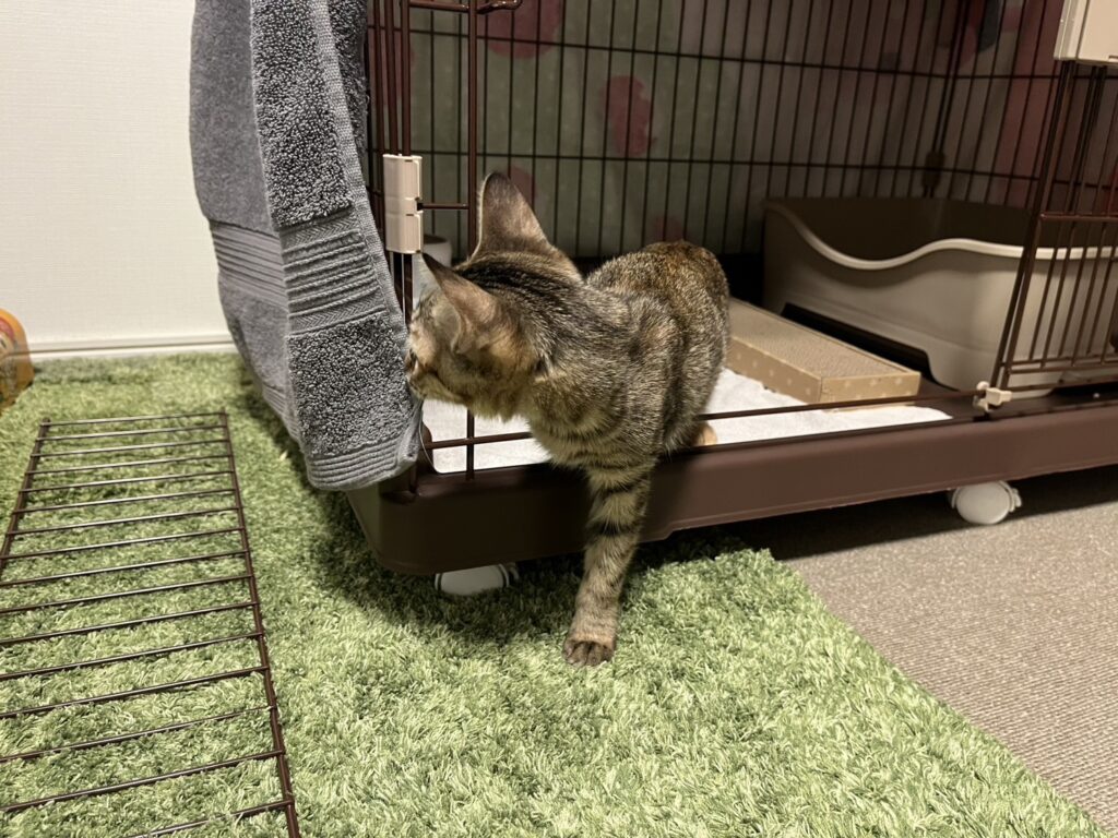 「ケージを開けておくと、そろりそろりと部屋に出てきて散策してますが、そこはまだビクビクしてる感じもあります😅」