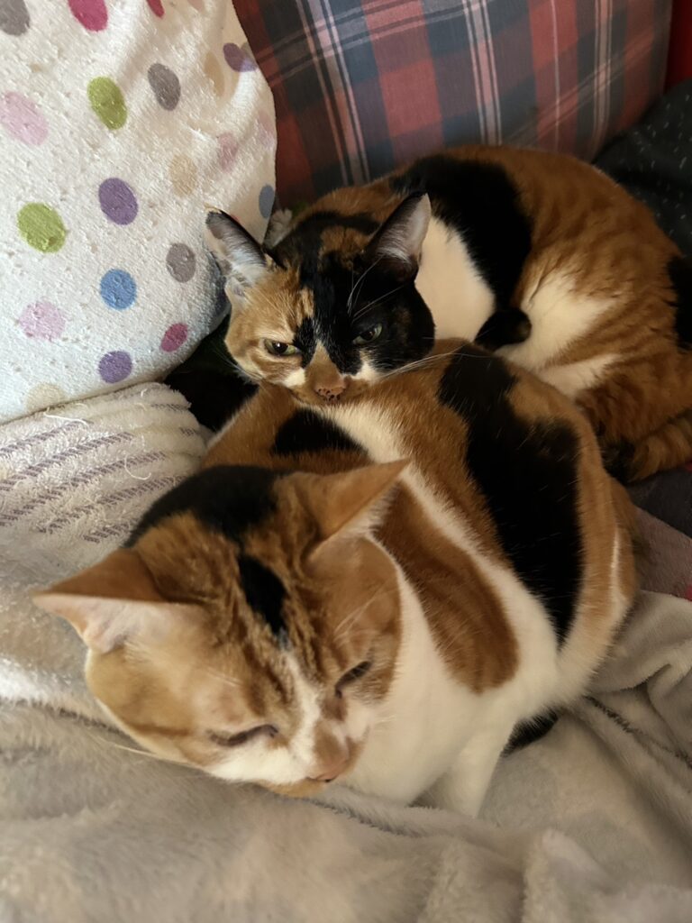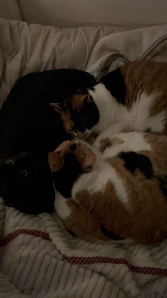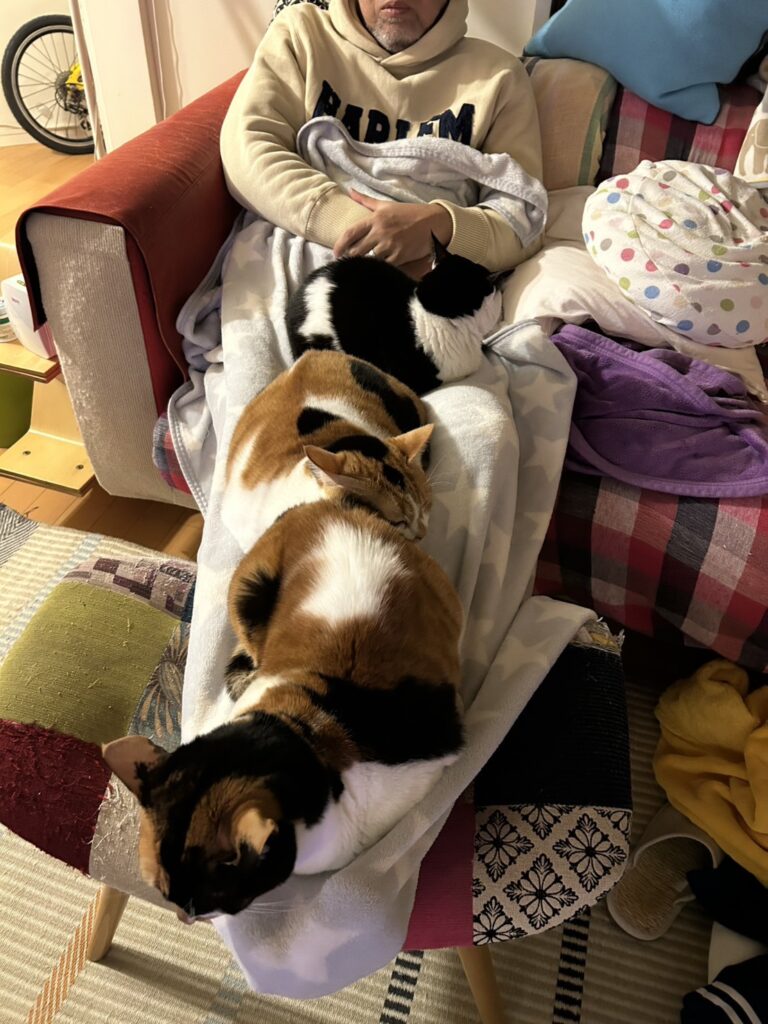 「近頃は寒いので、みんなでよく猫団子になってます」