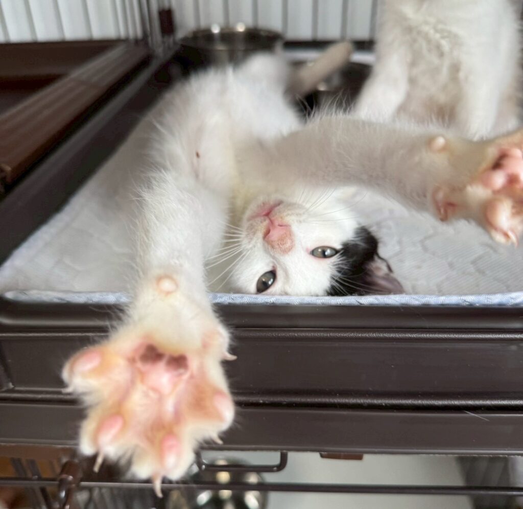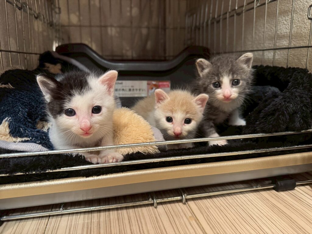 もなかくんは、2025年9月上旬頃、生後2週間ほどでハウスにやってきました。