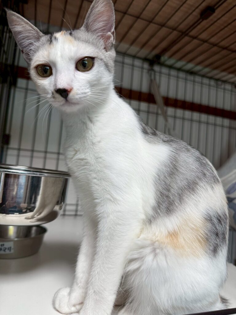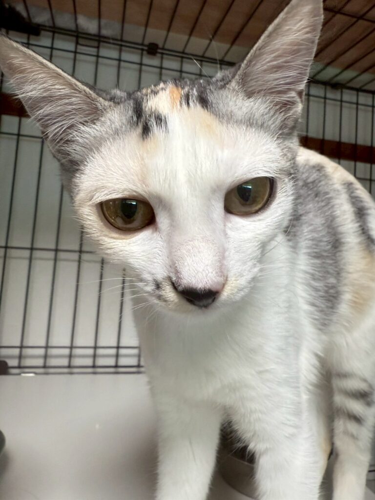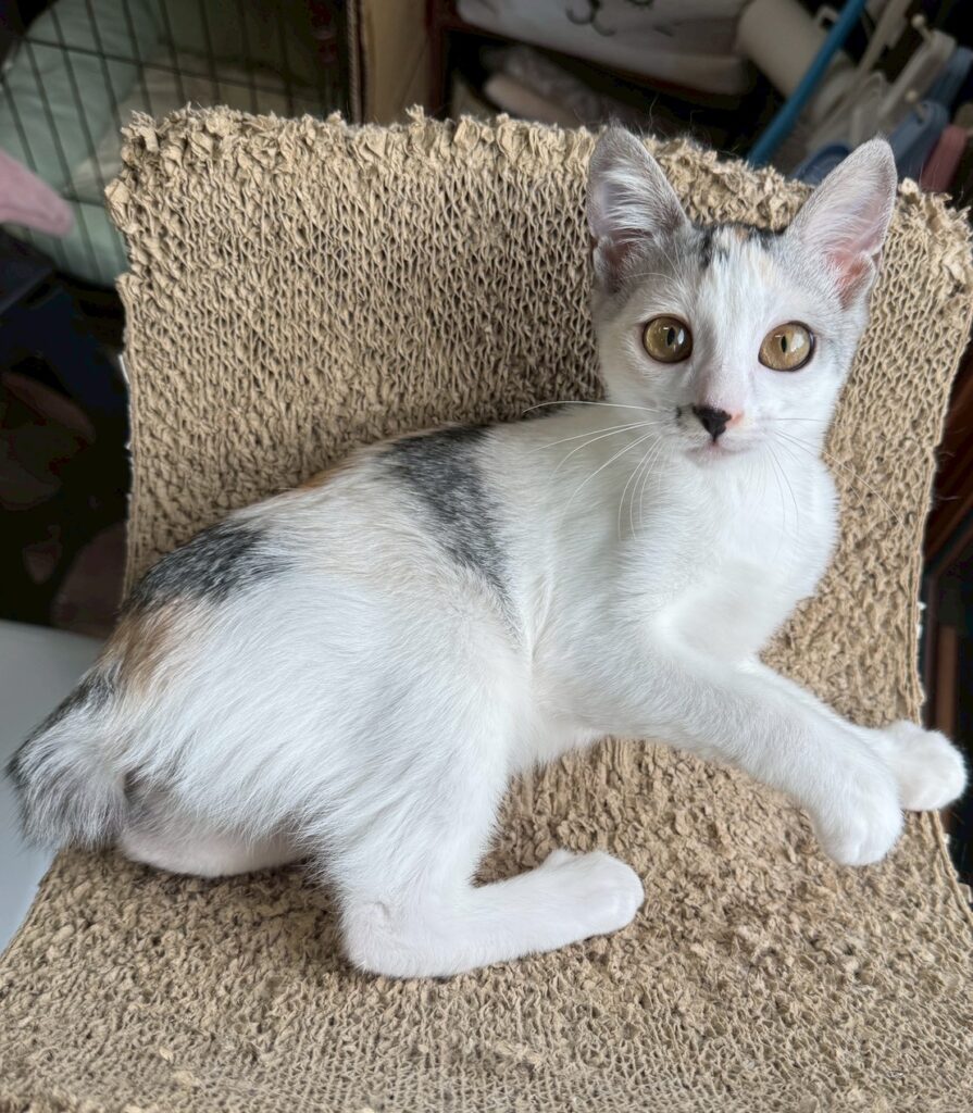 薄いオレンジ色がふんわり入った、三毛猫の女の子です🐈
