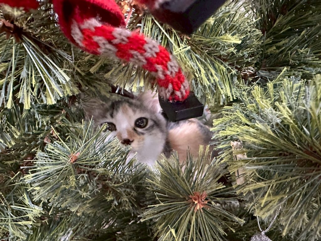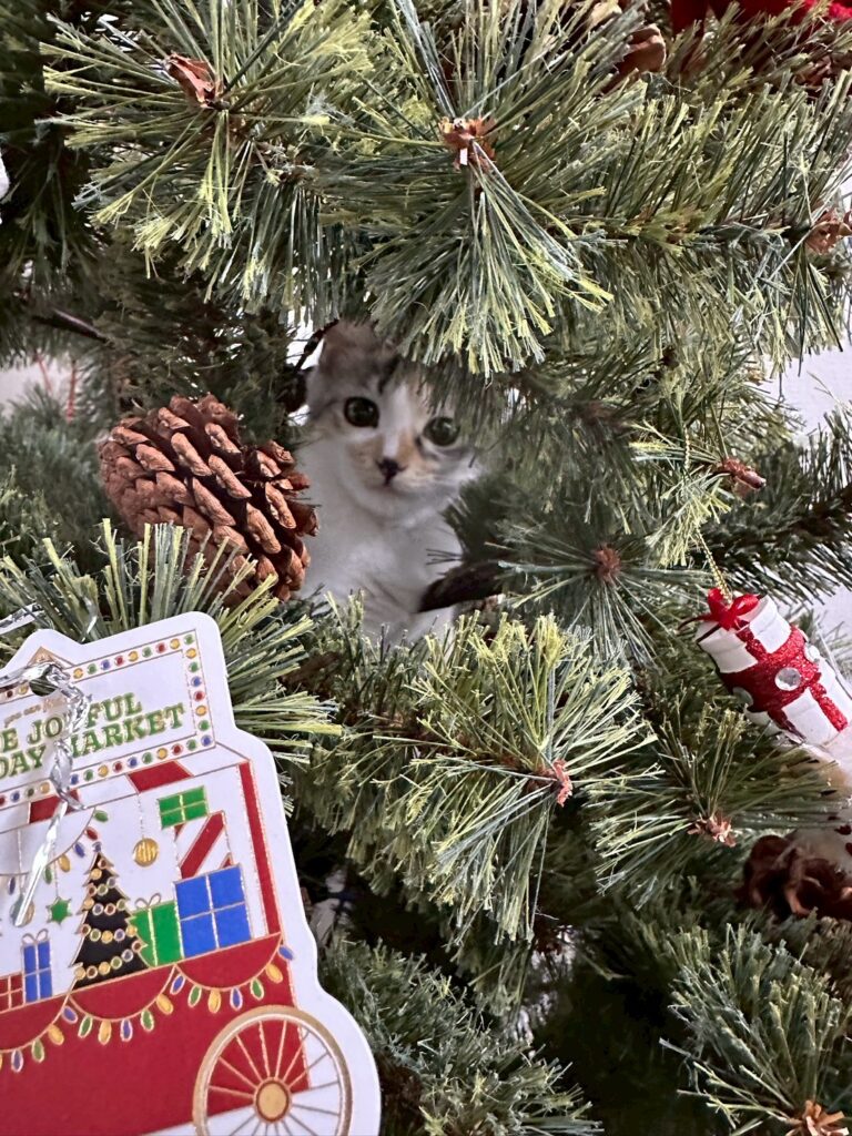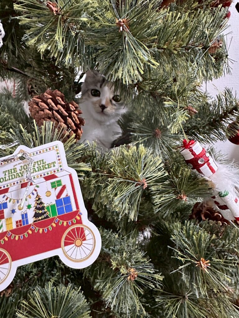 クリスマスツリーからお顔を出している姿や、寝ている姿など