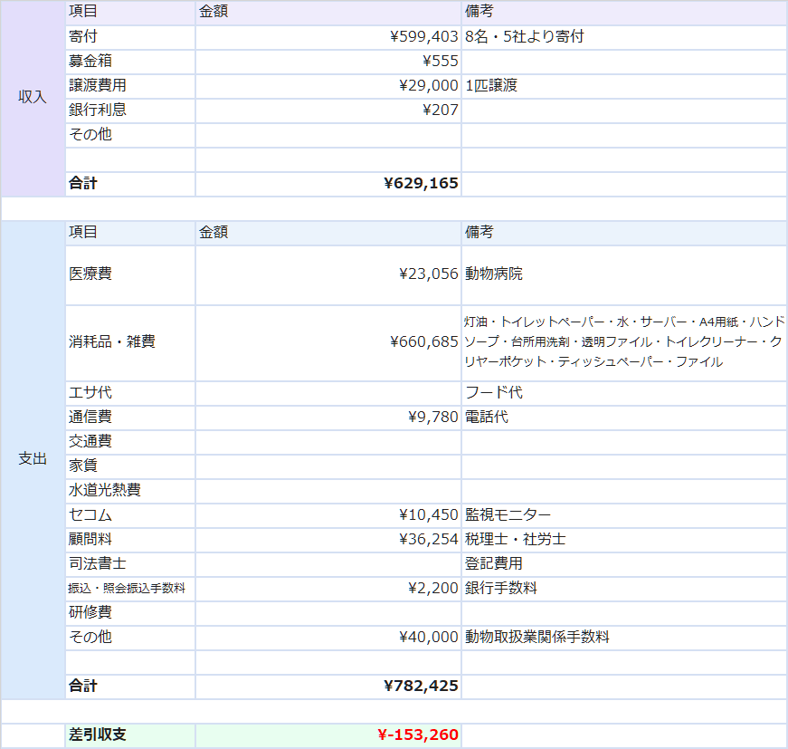 2026.04.14 2026年3月収支報告 収支報告 ご支援のご報告(2026年3月) 前の記事 3月のハウスの様子 次の記事 一般社団法人KR 本牧犬猫ライフ未来へ繋ぐ会 横浜市中区を中心に保護猫・保護犬活動をしています。 X Instagram Youtube Contact