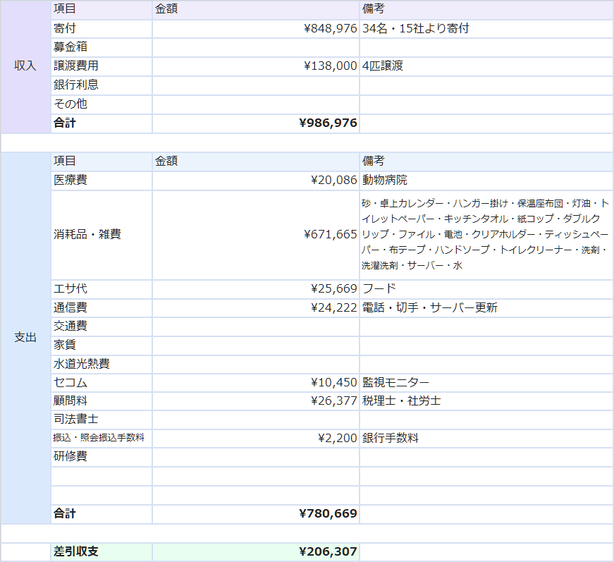 2025.02.05 2025.02.09 2025年1月収支報告 収支報告 収支報告一覧へ 【幸せ便り】ふぐくん・うにちゃん 前の記事 ご支援のご報告(2025年1月) 次の記事 一般社団法人KR 本牧犬猫ライフ未来へ繋ぐ会 横浜市中区を中心に保護猫・保護犬活動をしています。 X Instagram Youtube Contact
