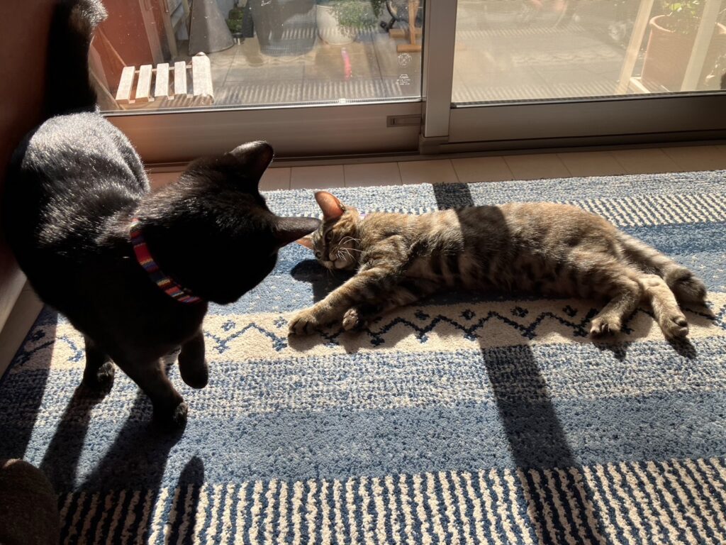 先住猫さんとの距離が、早くも縮まったようで安心いたしました♪