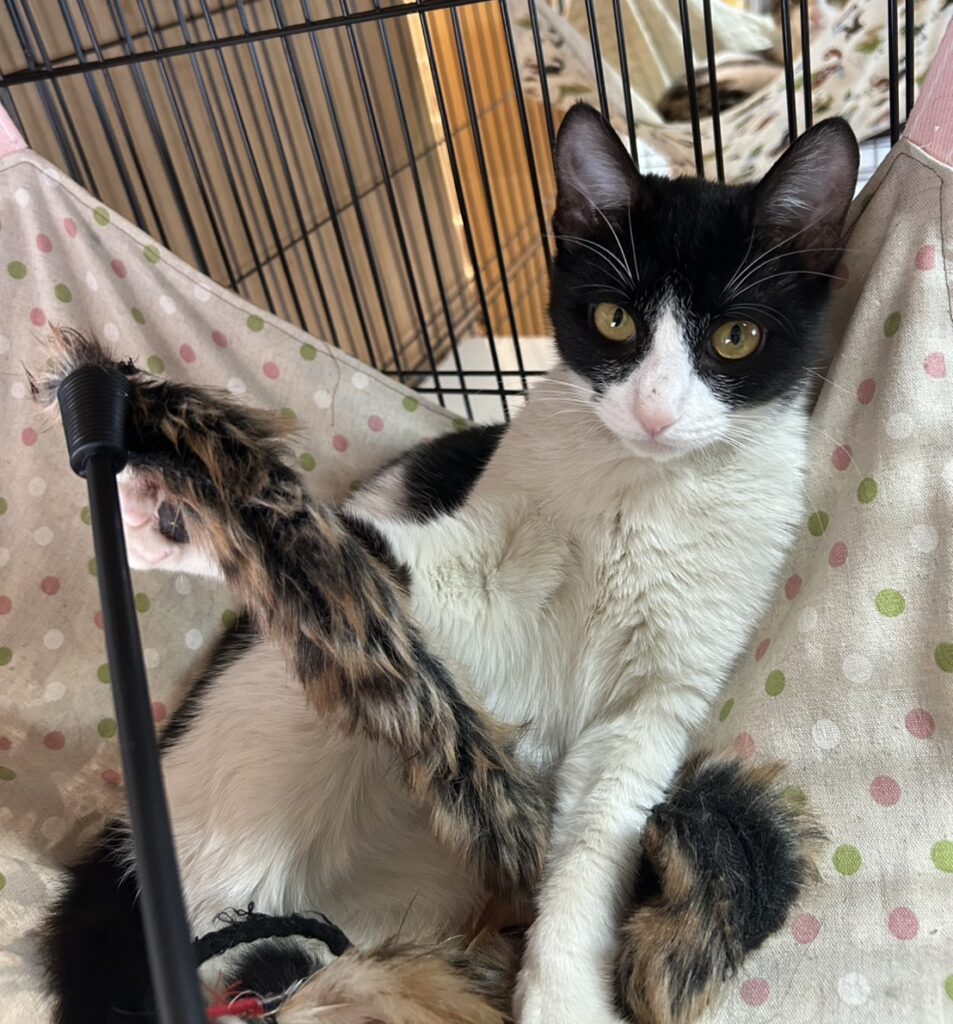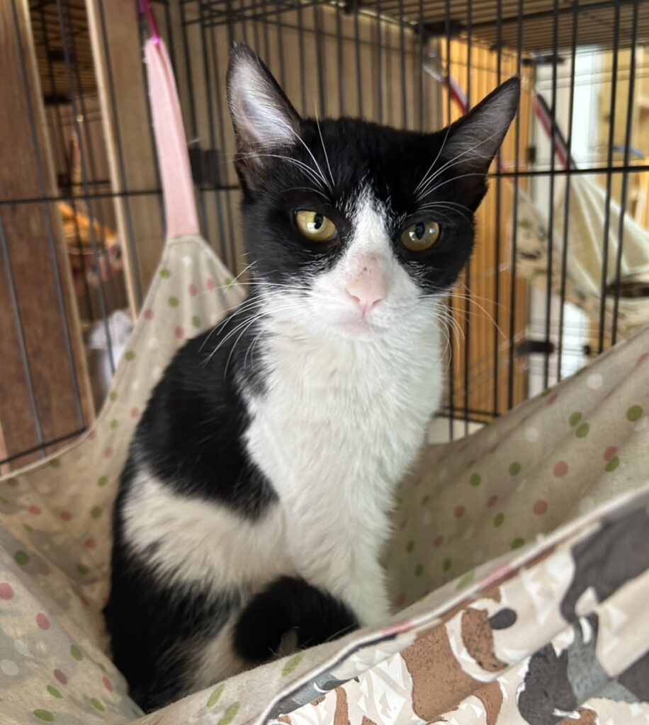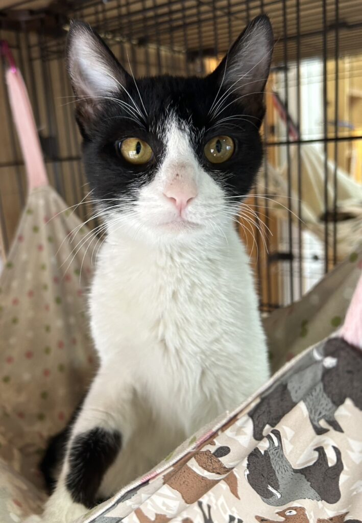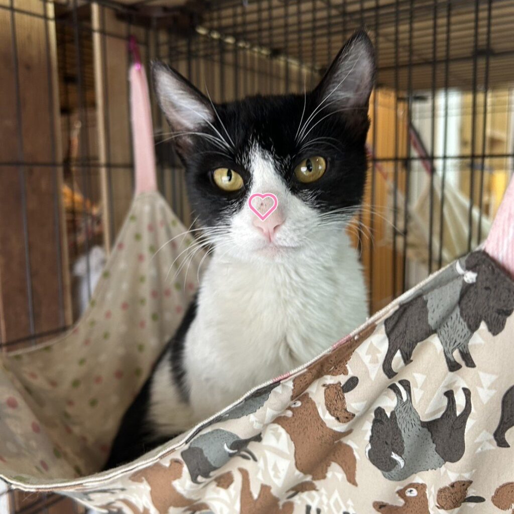 ハチワレ模様でお鼻の上には、小さな可愛らしいほくろがあります♪