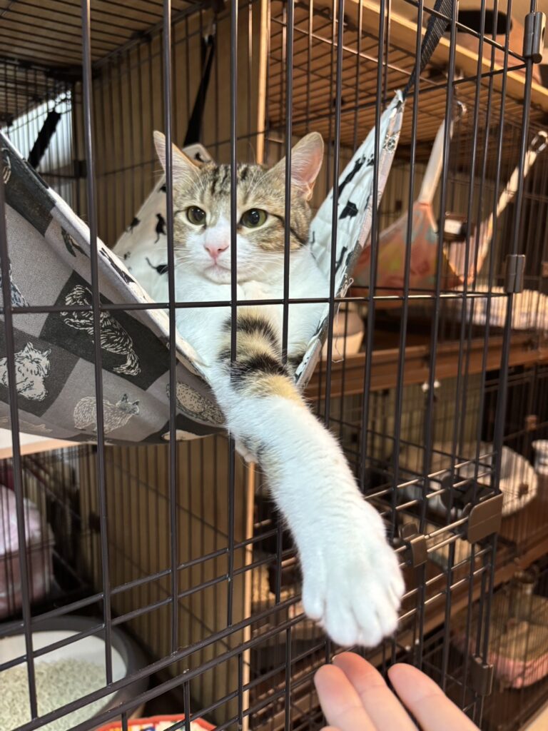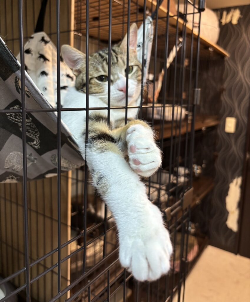 自慢の長いお手手を見せびらかすように、ゲージから伸ばす姿が、愛おしくて可愛いです🤭